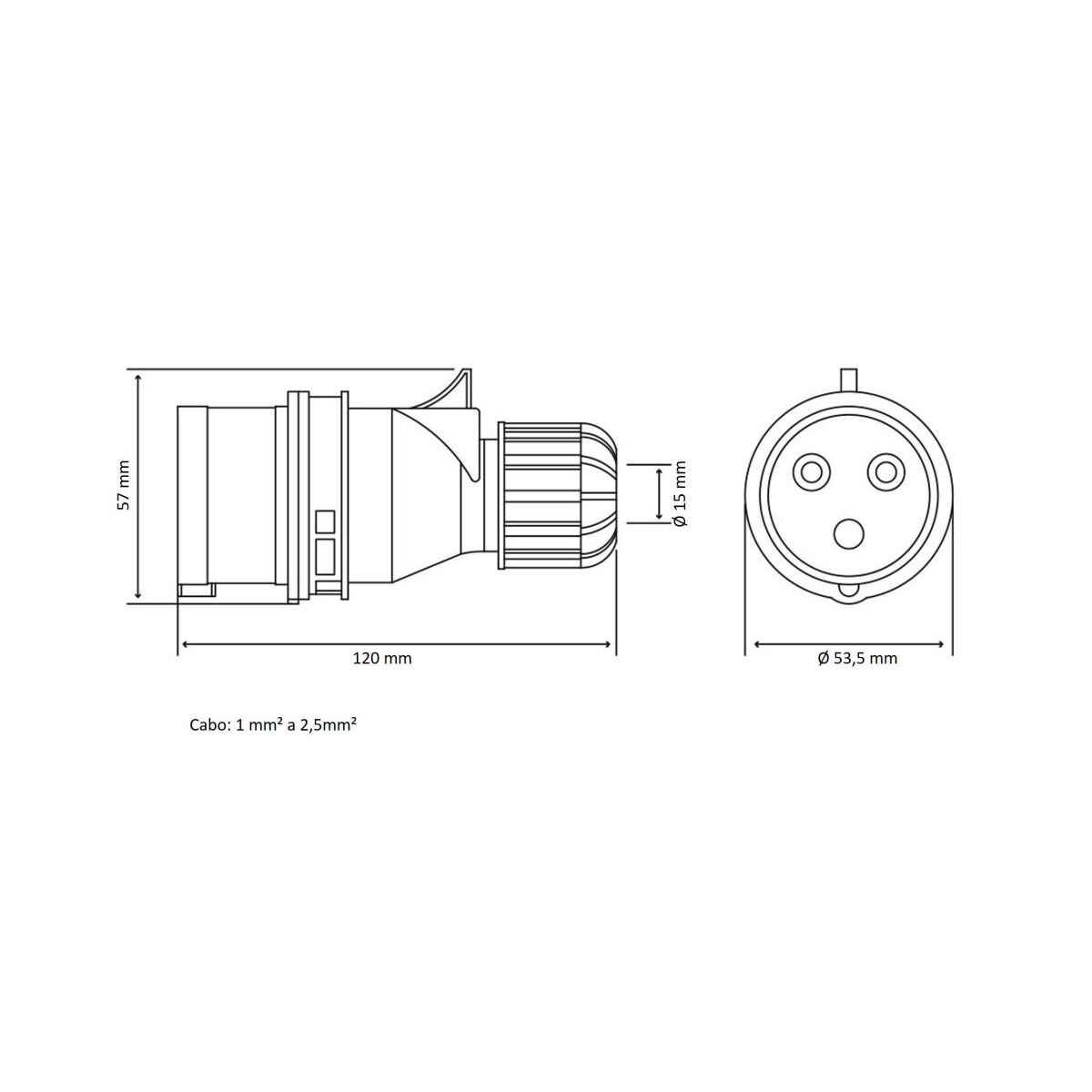 <p><strong><span style="font-size:18px">PLUG MÓVEL INDUSTRIAL 2P+T 220V 6h - COM PRENSA CABO</span></strong></p>rn